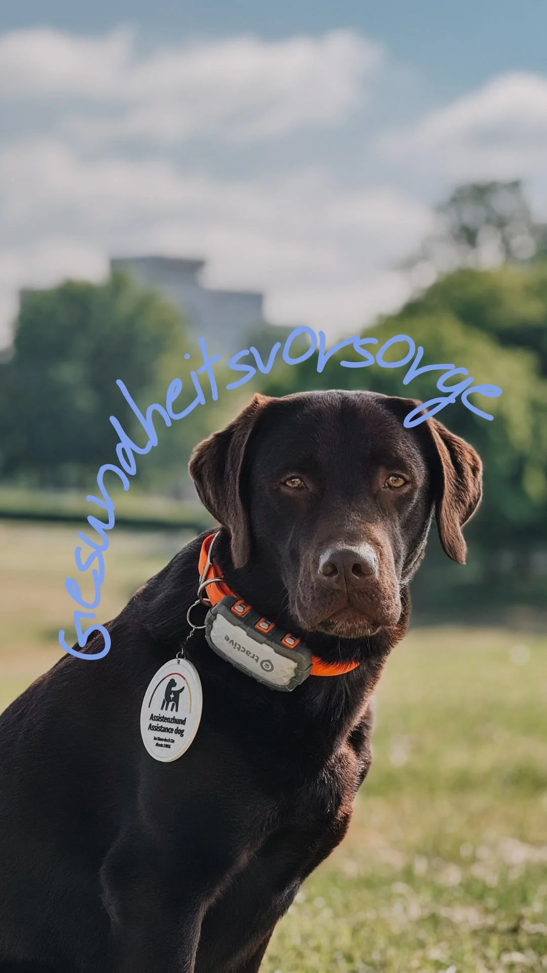 Er begleitet mich nicht nur durch meinen Alltag mit meinen Erkrankungen, sondern ist auch fester Bestandteil meiner Arbeit: ob bei Schulungen, Vorträgen, Events oder auf Social Media. Er macht alles mit! Als Assistenzhund arbeitet er zuverlässig, souverän und extrem fokussiert, als Familienhund hat er immer Unfug im Kopf, liebt lange Spaziergänge, Dates mit seinen Hundekumpels und alles am und im Wasser.